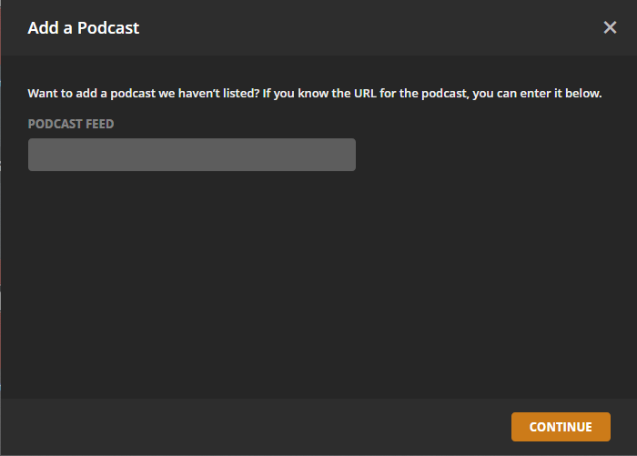 You can either search for a particular podcast with the universal search bar or add your favourite podcast by typing its URL: