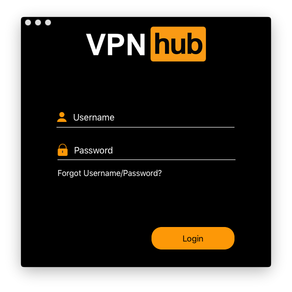 VPNHub doesn't require any installation on MacOS. Launching the downloaded binary file immediately displays the login screen.